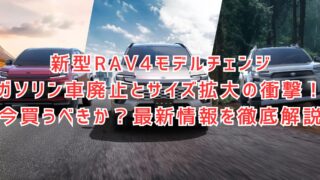 2025年後半に予定されるRAV4のモデルチェンジで新型はどう進化するのか徹底解説。ガソリン車廃止による価格上昇や全幅1,880mmへのサイズ拡大、PHEVの航続距離など最新情報を網羅しました。RAV4のモデルチェンジで新型を待つべきか、現行型を買うべきかの判断基準も提示します。
