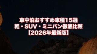 カーライフ 【2026年最新】車中泊におすすめの車種15選!軽・SUV・ミニバン別に就寝スペース寸法で徹底比較 2026年最新の車中泊おすすめ車種を軽自動車・SUV・ミニバン別に15台厳選。就寝スペースの寸法比較表付きで、フルフラットになる車種がひと目でわかります。 カーライフ