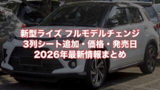 トヨタ 新型ライズのフルモデルチェンジは2026年後半が濃厚!3列シート追加・価格・発売日を徹底解説 新型ライズのフルモデルチェンジ最新情報を徹底解説。2026年後半の発売時期、3列シート「ライズスペース」、ハイブリッド4WD追加、予想価格198万円〜の全貌と買い時判断をまとめました。 トヨタ