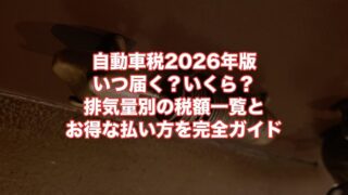 2026年の自動車税はいつ届く?排気量別の税額早見表、13年超の重課税額、環境性能割廃止の変更点、スマホ決済でポイント還元を受ける払い方まで徹底解説します。